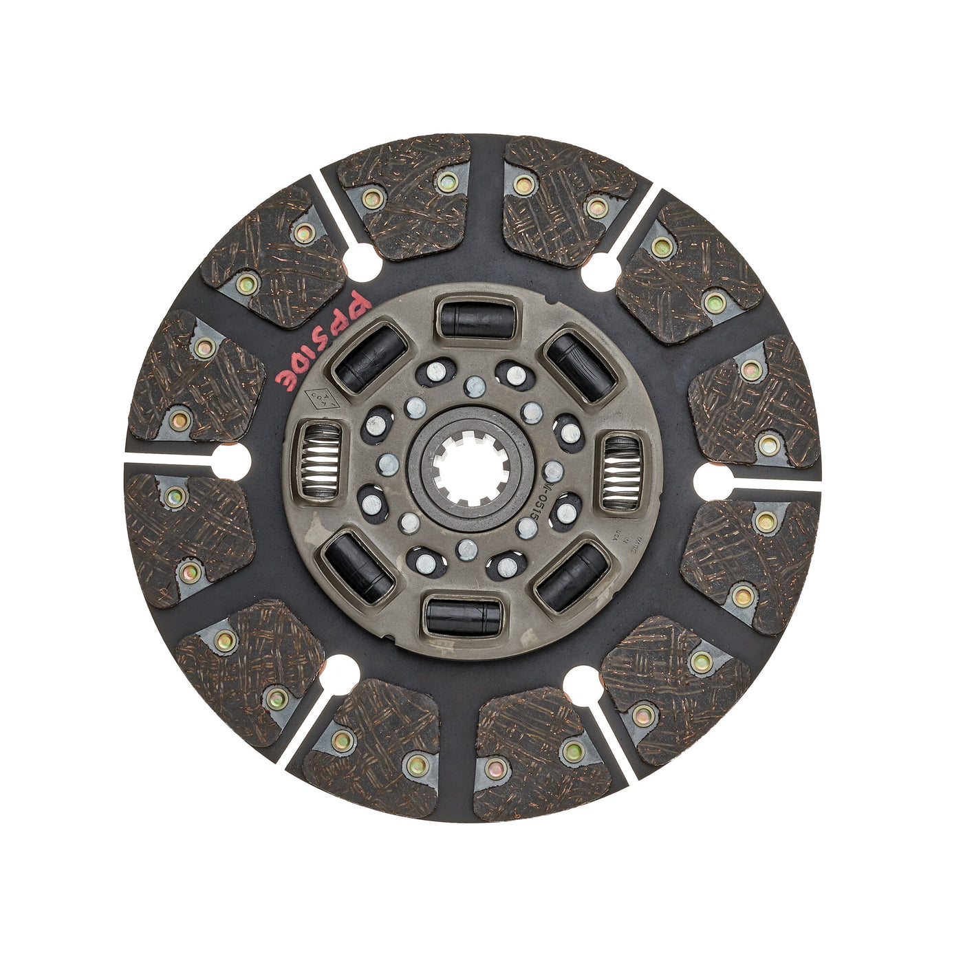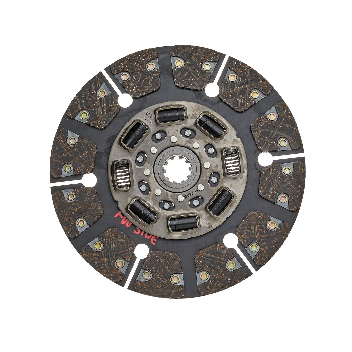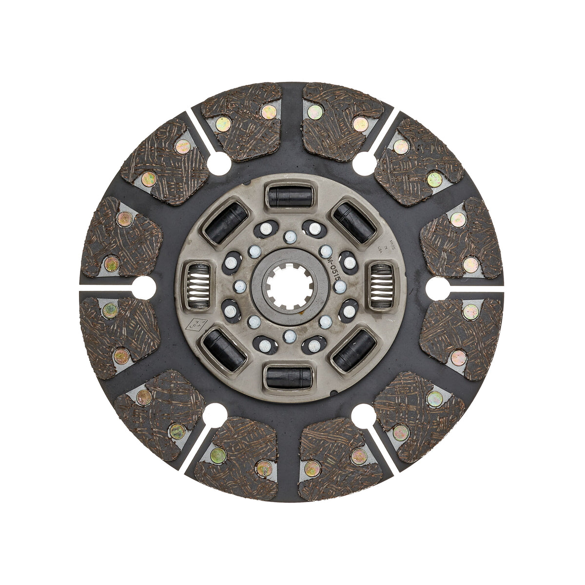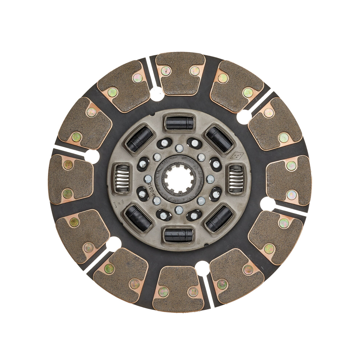 The button clutch disc, also known as a puck-style disc, features small friction pads (or buttons) spaced around the disc rather than a full friction surface. This segmented design reduces rotating mass, improving throttle response and heat dissipation. It is commonly used in performance vehicles where quick power transfer and reduced clutch fade are essential.