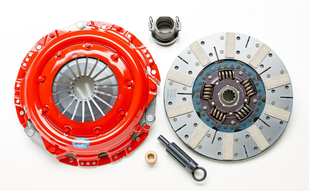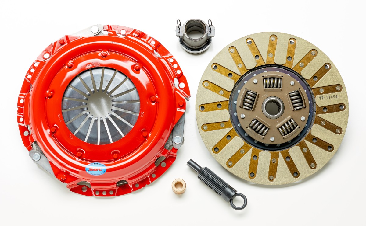 Recommended for single mass flywheel (SMF) when original design is DMF. This clutch package is designed for high HP vehicles desiring a start performance similar to O.E. The pressure plate is Race Engineered (SS) and SFI approved with significant load increase over stage 1,2 pressure plates (+600-800 lbs.). Expect a pedal effort increase of 20%-25%. Discs are assembled with heat-treated wear resistant hubs; drive plates and springs for high load transfer and dependable operation. The sprung centers on the disc in conjunction with the marcel fin between the linings create a dual dampening effect that simulates O.E. start performance. A Performance Organic friction material with a high metal content increases torque and RPM capability and maintains low operating temperatures which reduces wear and glazing.