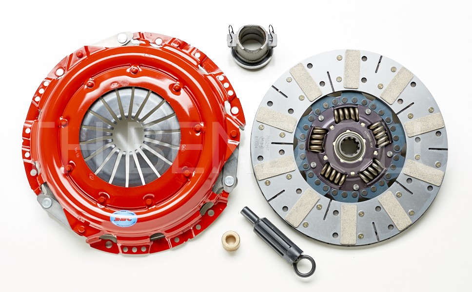Drag racing requires a Single Mass Steel Flywheel to be included with each kit when the original design is Dual Mass Flywheel. This clutch package is built to handle heavily modified cars and designed to function according to the specific needs of the 1/4 and 1/8 mile track. The pressure plate for this kit is SFI approved Race Cover engineered to disengage with less pedal travel shortening the shift time. Discs are a puck design, which reduces rotational mass and are assembled with all high carbon component pieces for maximum strength. The friction material used is Graphite impregnated Ceramic perfectly suited for drag racing because of its maximum friction co-efficient, rapid heat dissipation and abrupt engagement characteristics.